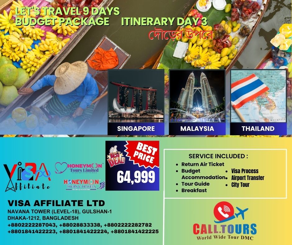 3 Countries 6 Days Budget Package Singapore + Malaysia +Thailand (দৌড়ের উপরে)